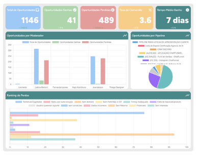 Visualize métricas, acompanhe resultados e identifique gargalos do funil em poucos cliques. Tome decisões baseadas em dados e melhore suas vendas continuamente.